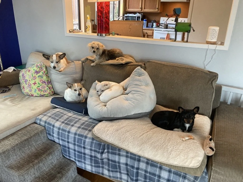 Your dog will live with me in my 4-dog household. (It’s usually just my two dogs but I currently have two small foster dogs). If you allow it, your dog can get on my furniture and sleep in bed with me.